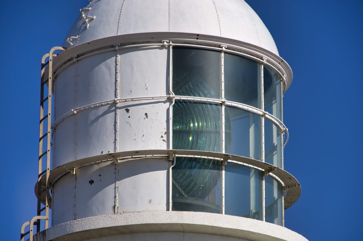 剱崎灯台は1871年に初点灯した西洋式灯台です。今では製造できない、全国10指に入る大きさの「第2等フレネルレンズ」を使用しています。2025年に光源がLED化されたそうですが、レンズは古いまま。