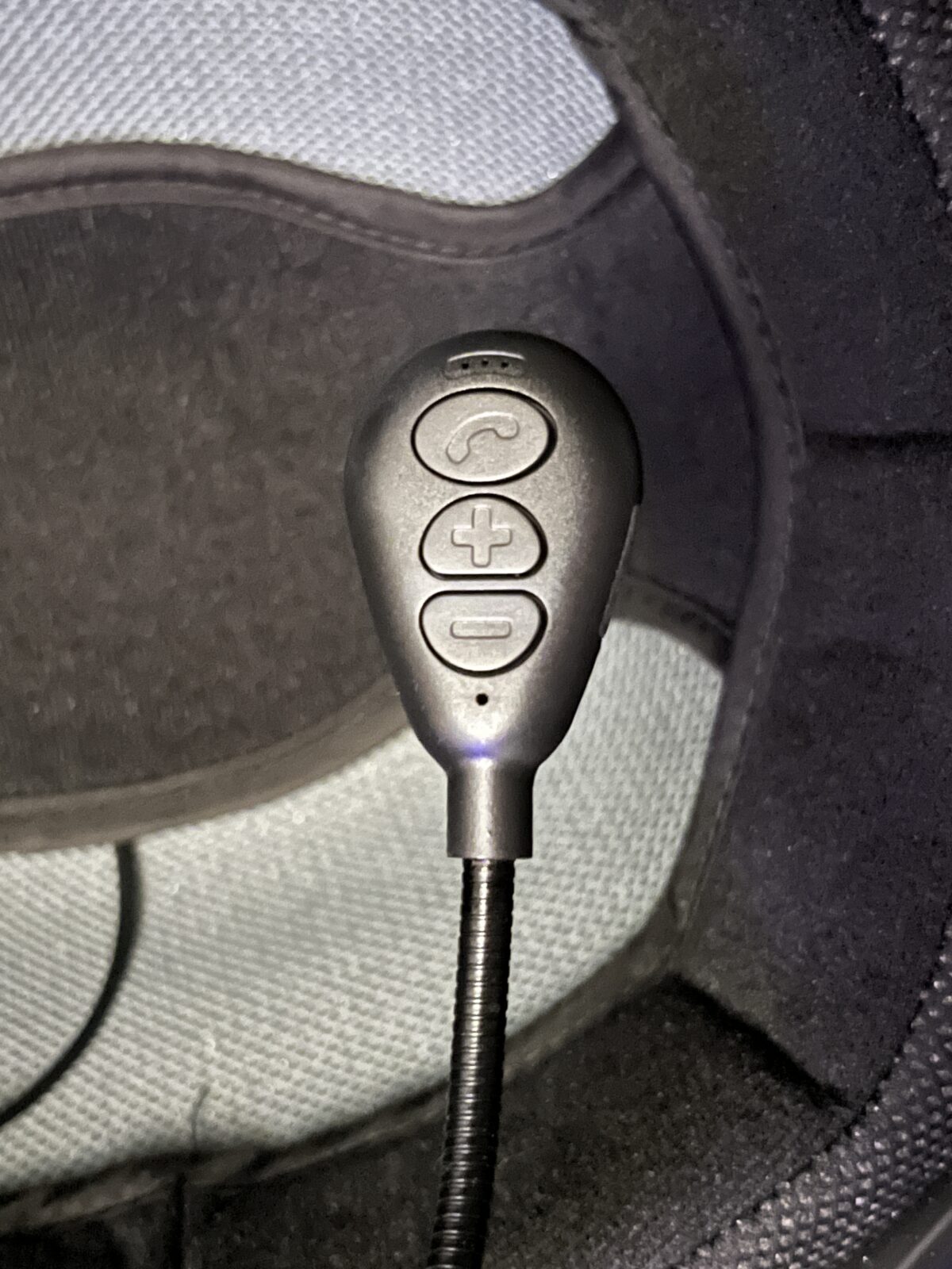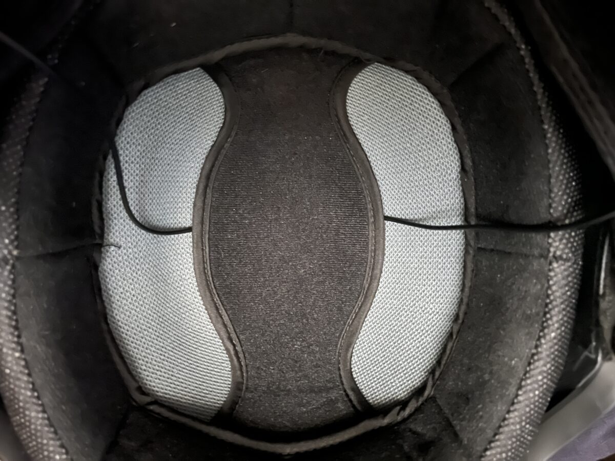 通常、こうしたヘッドセットは、フルフェイスやシステムヘルメット、最低でもジェットヘルメットで使用するようです。これらヘルメットの場合、ライナー(肌に当たる布)の下に「インカムホール」と呼ばれる浅くて丸い穴が開いているものがあるんですね。ここにスピーカーを貼り付けて使うのが正解。